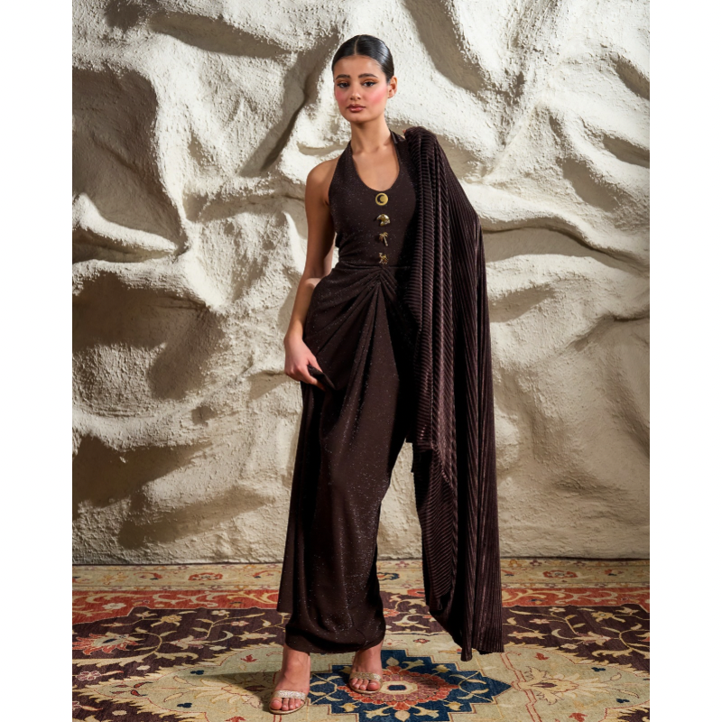 Brown dress with Bisht with Nieline designed buttons (2 pieces)