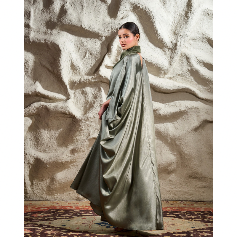 Light Green Silk Dress with collar & Nieline designed buttons (1 piece)